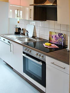 • komplett ausgestattete Küche mit Kühlschrank und Spülmaschine